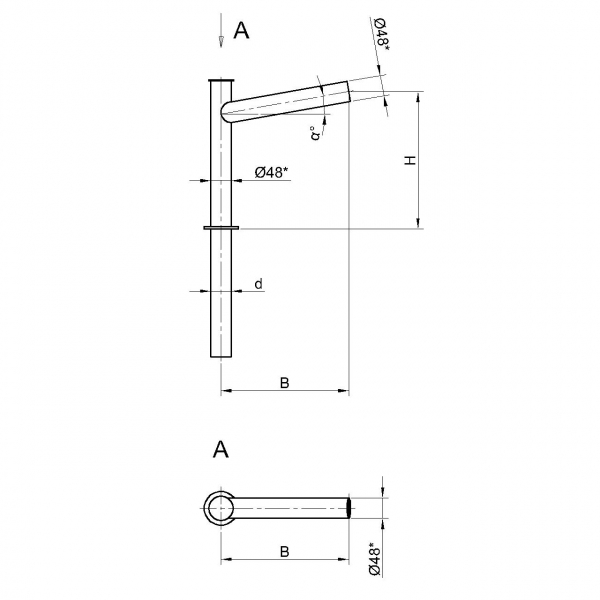 Однорожковые кронштейны К20-0,5-0,5-1-1 предназначен для крепления светильника на трубчатой опоре освещения. Завод опор освещения «Альдекс» изготавливает однорожковые консольные кронштейны из стального проката. Собственное производство позволяет выполнять изделия надлежащего качества и в кратчайшие сроки. Конструкция однорожковых кронштейнов К20-0,5-0,5-1-1. Конструкция консольных однорожковых кронштейнов К20-0,5-0,5-1-1 представляет собой гнутую металлическую трубу заданных размеров.