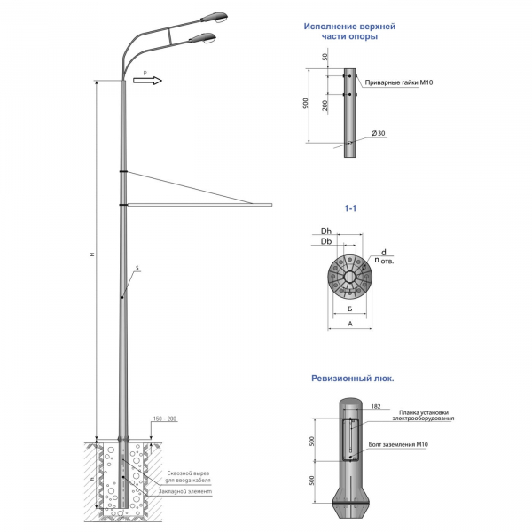 Опора ТФГ-3000-10,0-02-ц — опора трубчатая фланцевая применяется для установки оборудования уличного освещения и одновременной прокладки линий электропередач городского наземного электротранспорта, размещения рекламных и информационных щитов.