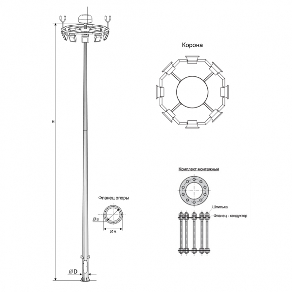 Прожекторная мачта освещения металлическая оцинкованная ПМО-16, изготовленная по ГОСТ.